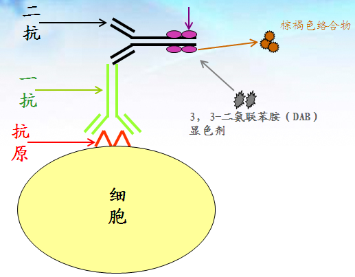 ?? 原理:利用抗原與抗體的特異性結(jié)合原理和特殊的標(biāo)記技術(shù),通過(guò)化學(xué)反應(yīng)使標(biāo)記抗體顯色,對(duì)組織細(xì)胞內(nèi)的特異性抗原進(jìn)行定位、定性、定量檢測(cè)的一門(mén)技術(shù)。