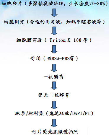 ?? 原理:免疫熒光就是利用抗原與抗體的特異性結(jié)合原理及特殊的熒光素標(biāo)記技術(shù),通過(guò)激光激發(fā)使熒光素發(fā)出熒光,在熒光顯微鏡下觀察熒光的變化從而對(duì)細(xì)胞內(nèi)的抗原進(jìn)行分析的技術(shù)。用免疫熒光顯示和檢查細(xì)胞或組織內(nèi)抗原或半抗原物質(zhì)等方法稱為免疫熒光細(xì)胞(或組織)技術(shù)。