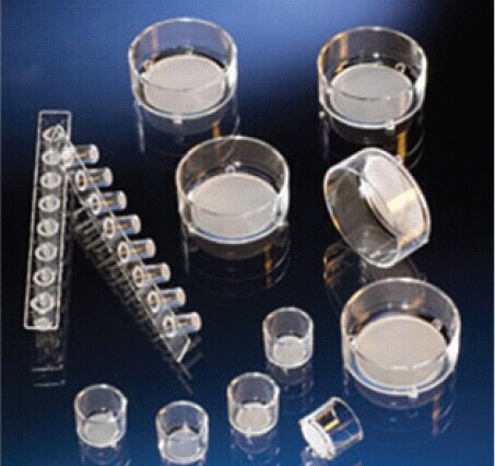 又稱細(xì)胞培養(yǎng)小室,簡(jiǎn)稱CCI或者CC Inserts,便于大部分沒(méi)有基質(zhì)包裹的細(xì)胞培養(yǎng)使用。CCI主要配套NUNC公司的細(xì)胞培養(yǎng)板使用。細(xì)胞接種到小室底部的膜上后,套入培養(yǎng)板的孔,浸入培養(yǎng)基培養(yǎng)。我們提供的聚碳酸脂膜(polycarbonate),它們均具有良好的細(xì)胞附著和生長(zhǎng)特性,極大的提高了細(xì)胞的分化水平。