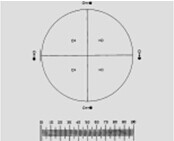 G57是目鏡分劃板的一種,主要應(yīng)用于制藥行業(yè),用于篩選和分析樣本中的顆粒物,檢測顆粒物的分布狀態(tài)。當(dāng)樣本顆粒直徑小于50µm或者顆粒數(shù)量在一定范圍內(nèi)時,G57適合做粒徑大小的分析。G57分劃板上的黑圓點和空心環(huán)分別代表顆粒直為10µm25µm兩種,可作為與顆粒比對的參考。此外,一個帶刻度的水平比例尺也整合到其中。