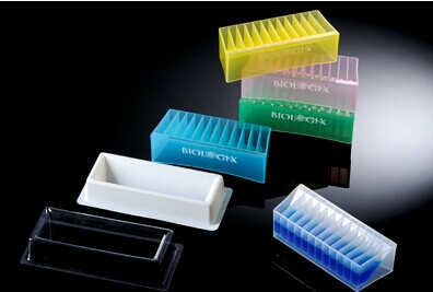 12道彩色試劑槽,每道的容積為5ml,并且每道都有印刷的數(shù)字標(biāo)識(shí),試劑槽反面同樣可以使用,可以容納50ml液體,材料為醫(yī)療級(jí)聚丙烯,不消毒,5種混合色:紅,藍(lán),綠,黃和透明色,100個(gè)/箱。
