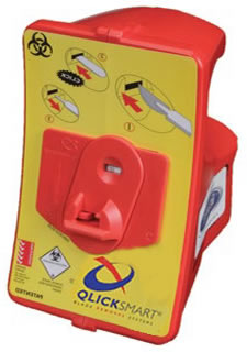 QLICKSMART手術(shù)刀片安全移除器是世界首創(chuàng)的單手移除手術(shù)刀片的工具,可以防止用手拿鑷子或者徒手取出刀片時所造成的意外傷害以及血源感染的風(fēng)險。只需要將手術(shù)刀瓶送平推入移除器插入口,直到聽到“咔嗒” 一聲,刀片即自動完成移除,這個移除器可以容納100片。